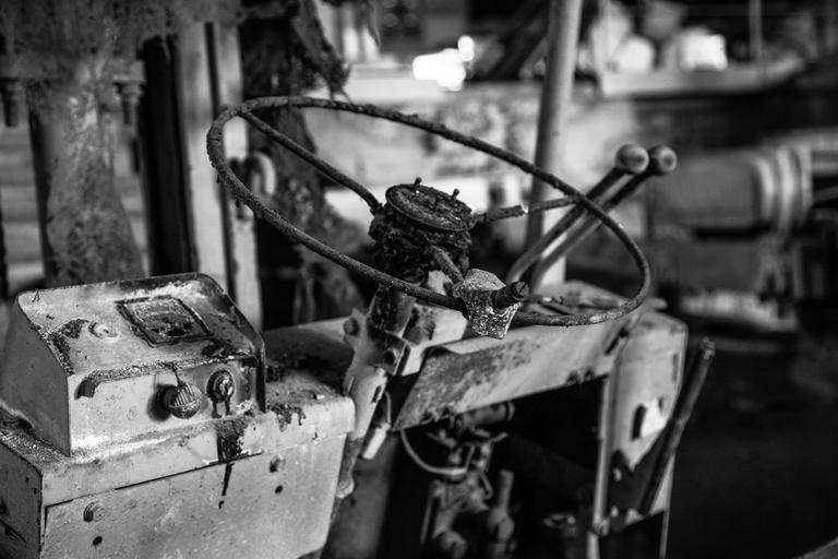 | Keywords: steering wheel old rusty black and white decay steering wheel control transport vintage equipment destroyed old factory empty spider webs velo nobody industrial vehicle industry vehicle industrial technology construction iron machinery steel industrial building truck |