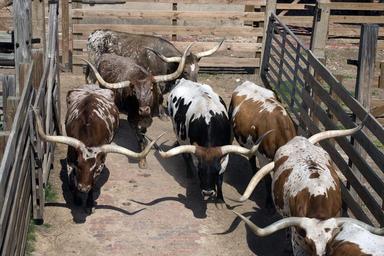 Keywords: steers cattle drive pens cowtown fort worth texas tourists livestock cowboys western show entertainment longhorns bovine beef animals usa