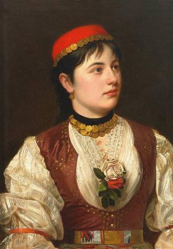 | Keywords: Stefan Todorovic Polekonia Tolorovitschka.jpg Polekonia Tolorovitschka 1889 oil on canvas 58 x 42 5 cm zeller de 1889 attributed to Stefan Todorovic 1832 “1926 PD-old-auto-1923 1926 1889 paintings Oil portraits of women Tolorovitschka Polekonia Images from Auktionshaus Zeller Portraits in national costume Monisto National costumes of Serbia in art |