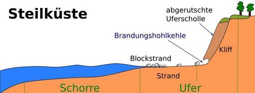 | Keywords: Steilküste (Schema).svg en shematic view of cliff coast de schematische Darstellung einer Steilküste own Salino01 27 02 10 thumb left Flachküste Schema Diagrams of cliffs Diagrams of coastal landforms SVG geology Diagrams of wave-cut platforms Geological cross sections in German Coast cross sections Sea cliffs Coastal landforms |