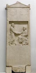 | Keywords: Stele of Demokles son of Amphilochus BM GR1772.7-3.2.jpg Funerary stele of Demokles son of Amphilochus Stèle funéraire de Démoclès fils d'Amphiloque full form Τὸν ινυτὸν κατὰ άντα καὶ ἔξοχον ἐν ολιήταις / νέρα γηραλ έ ου τέρματ' ἔχοντα βίου / Αἴδεω νυχίοιο μέλας ὑ εδέξατο κόλ ος / εὐσεβέων θ' ὁσίην εὔνασεν ἐς κλισίην / μνῆμα δ' οφθιμένοιο αρὰ τρηχῆαν ταρ ὸν / τοῦτο άïς κεδνῇ τεῦξε σὺν εὐνετίδι / ξεῖνε σὺ δ' είσας Δημοκλέος υἱέα χαίρειν / Δημοκλέα στείχοις βλαβὲς ἴχνος ἔχων grc The man who was wise in all things and eminent among the citizens reaching the end of a long life the black bosom of gloomy Hades welcomed him and laid him on the hallowed couch of the pious This memorial of one who perished along a rough path his son set up together with his wedded wife Stranger having bidden farewell to Demokles son of Demokles May you travel with safe footsteps trans B F Cook CIG 3256 - 199 1 AD marble cm 137 53 11 43 Institution British Museum Department of Greek Roman Antiquities room 78 459526 object history Smyrna credit line ProvenanceEvent gift Matthew Duane Thomas Tyrwhitt 1772 accession number GR 1772 7-3 2 Inscription 1024 Sculpture 703 own photo date 2012-02-11 User Jastrow/cc-by-2 5 artwork license PD-old-100-1923 photo license Cc-by-2 5 Ancient Greek funerary steles in the United Kingdom Room 78 British Museum Taken with Nikon D300s Taken with AF-S VR Micro-Nikkor 105mm f/2 8G IF-ED |