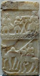 | Keywords: Stele Iglum Louvre AO1029.jpg Artwork Funerary stele; upper band banquet scene with three people; lower band camel driver with two camels Sabaean inscription Image and funerary monument of `Iglum son of Sa`adīllāt of Qaryot May Eastern `Athtar smite whoever would destroy it Alabaster 1st-3rd centuries AD From Southern Arabia H 55 cm 21 ½ in W 29 cm 11 ¼ in D 8 cm 3 in Museum Louvre Department of Oriental Antiquities Sully wing ground floor room 19 object history credit line Purchase 1883 accession number AO 1029 Jastrow 2007 other versions Stèle funéraire ; registre supérieur scène de banquet avec trois personnes ; registre inférieur chamelier et deux chameaux Inscription en dialecte sabéen « Image et monument funéraire d'`Iglum fils de Sa`adîllât de Qaryot Qu'`Athtar l'Oriental frappe celui qui le détruirait » Albâtre Ier-IIIe siècles ap J -C Provenance Arabie du Sud Sabaean inscriptions Reliefs of camels Ancient Near East steles Near Eastern Antiquities in the Louvre - Room 19 |