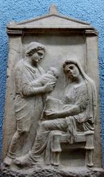 MAKE A MEME View Large Image Stele mother BM 2232.jpg Seated woman leaving her newborn child to the a nurse funerary stele Marble made in Athens ca 425 “400 BC From Athens Femme assise laissant son nouveau-né à une nourrice stèle funéraire Marbre production ...