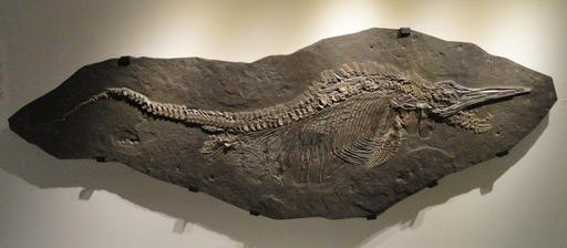 | Keywords: Stenopterygius quadriscissus, Early Jurassic, Toarcian Age, Posidonia Shale, Holzmaden, Baden-Wurttemberg, Germany - Houston Museum of Natural Science - DSC01851.JPG Exhibit in the Houston Museum of Natural Science Houston Texas USA Photography was permitted in the museum without restriction Daderot 2012-10-22 15 09 21 Daderot cc0 cc0 Fossils in the Houston Museum of Natural Science Stenopterygius fossils | ||||