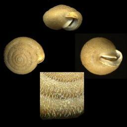 | Keywords: StenotremaFlorida1.jpg The polygyrid land snail Stenotrema florida from Liberty County Florida 1964; with a close-up view of the periostracal hairs typical of the genus Snails about 13 mm in diameter or 1/2 inch Own 2008 Tim Ross Stenotrema florida |