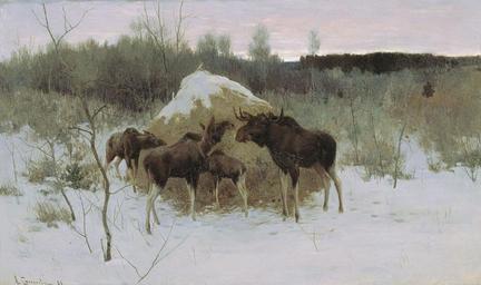 | Keywords: Stepanov 008.jpg Artwork Creator Alexei Stepanov en Herd of Moose 1889 oil on canvas cm 47 8 80 8 Museum Tretyakov Gallery object history credit line accession number http //www art-catalog ru/picture php id_picture 12008 PD-old-70 Alexei Stepanov Paintings of moose |