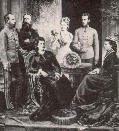 Keywords: Stephanie rudolf.jpg en Rudolf 1858-1889 Stephanie 1864-1945 his parents ru Об учение к онп инца Рудольфа Габсбу га 1858-1889 и п инцессы Стефании Бельгийской 1864-1945 Родители импе ато Ф анц-Иосиф I и импе ат ица Елизавета ко оль Леопольд II и ко олева а ия Ген иетта http //www theroyalforums com/forums/f159/king-leopold-ii-of-the-belgians-1835-1909-a-13705 html author 1881 PD-Art DEFAULTSORT 1881; Rudolf of Austria Stephanie of Belgium his parents Rudolf Crown Prince of Austria Princess Stéphanie of Belgium Marie Henriette of Austria Leopold II of Belgium Franz Joseph I of Austria in 1881 Empress Elisabeth of Austria in portraits 19th-century family portraits of royalty |