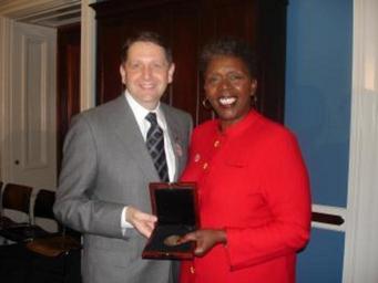 Keywords: Stephanie Tubbs Jones and Marc Katz.jpg en Marc Katz left President of the North-American Interfraternity Conference NIC presents Rep Stephanie Tubbs Jones with the NIC Silver Medal The medal is presented to fraternity and sorority alumni who have provided significant leadership for causes that advance the highest ideals of fraternalism and who champion causes that positively impact the fraternal community Rep Tubbs Jones is the first woman representative to be presented with this award http //tubbsjones house gov/index cfm sectiontree 23 26 54 sectionid 54 photoNum 2 United States Federal office of Rep Stephanie Tubbs Jones 2007-04-17 PD-USGov Stephanie Tubbs Jones Presentation of medals