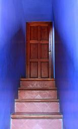 Keywords: steps stairs blue blue walls door park guell gaudi door at top of stairs door at top of steps blue hallway