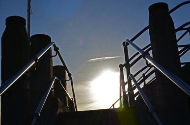 Keywords: steps sunlight rails sky shade blue sky sun and shade silhouette shapes shape