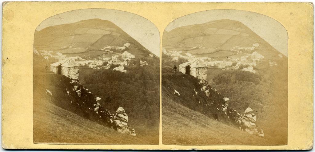Keywords: Stereo card Lynton Devon 001.jpg 1860s stereoview picture which has the original label on the back Lynton from the summerhouse Lyn Cliff Photographed and published by W Palmer This is Lynton in Devon England; a village in a gorge The photographer ran the family firm William Eastman Palmer Sons in the Plymouth area in the 1860s and 1870s Scan of stereoview photo in my possession s 1860 William Eastman Palmer d 1896 out of copyright The reverse of the card is here File Stereo card label Lynton Devon 001 jpg PD-old-70-1923 Lynton William Eastman Palmer Stereo cards of the United Kingdom North coast of Devon Cliffs of Devon |