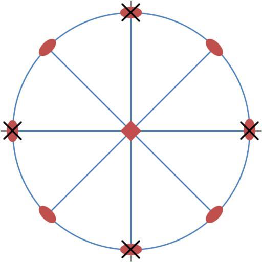 | Keywords: Stereogram tetragonal prism 4mmm.png en Stereographic projection of a tetragonal prism 100 in the 4/mmm symmetry point group The mirror planes are represented in blue the rotation axes in red The face poles are marked by the black crosses The thin black ticks show the direction of the equivalent crystallographic axes a and b fr Projection stéréographique d'un prisme tétragonal 100 dans le groupe ponctuel de symétrie 4/mmm Les plans miroirs sont représentés en bleu les axes de rotation en rouge Les pôles des faces sont marqués par les croix noires Les trait fins noirs montrent la direction des axes cristallographiques équivalents a et b own Perditax 2011-06-05 Cc-zero Prisms geometry Stereographic projection in crystallography |