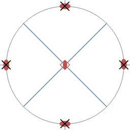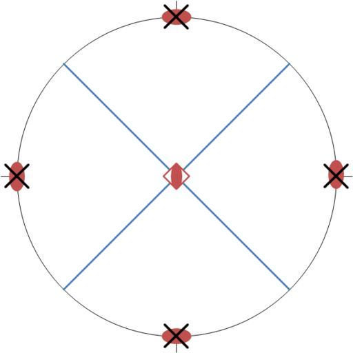 | Keywords: Stereogram tetragonal prism -42m.png en Stereographic projection of a tetragonal prism 100 in the -42m symmetry point group The mirror planes are represented in blue the rotation axes in red The face poles are marked by the black crosses The thin black ticks show the direction of the equivalent crystallographic axes a and b fr Projection stéréographique d'un prisme tétragonal 100 dans le groupe ponctuel de symétrie -42m Les plans miroirs sont représentés en bleu les axes de rotation en rouge Les pôles des faces sont marqués par les croix noires Les trait fins noirs montrent la direction des axes cristallographiques équivalents a et b own Perditax 2011-06-05 Cc-zero Prisms geometry Stereographic projection in crystallography |