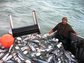 Keywords: Sternfull.JPG en Sternfull Bristol Bay Sockeye F/V Mecca Captain Turk Deckhand Marco Casagrande 2006 Own Härmägeddon 2006 Bristol Bay Commercial fishing in Alaska Salmon fishing Unidentified Oncorhynchus People with fish