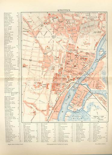 Keywords: Stettin (Doppelseitige Farbkarte).jpg Source Meyers Konversationslexikon 1888 Band 15 Seite 307a PD-Meyers Old maps of Szczecin