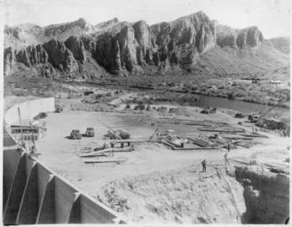 | Keywords: "Stewart Mountain Dam. View looking downstream, new spillway channel. Left counterfort wall in lower left corner." - NARA - 294627.jpg Scope and content Photograph from Volume One of a series of photo albums documenting the construction of Roosevelt Dam Stewart Dam and other related work on the Salt River Project in Arizona General notes 294627 Local identifier Department of the Interior Bureau of Reclamation Engineering and Research Center 05/18/1981 - 03/04/1988 NARA's Rocky Mountain Region Denver NRGA Building 48 Denver Federal Center West 6th Avenue and Kipling Street Denver CO 80225-0307 1936 Record group Record Group 115 Records of the Bureau of Reclamation 1889 - 2008 Record group ARC 444 Photograph albums compiled 1903 - 1972 Series ARC 293611 File unit File unit ARC Variant control numbers NAIL Control Number NRG-115-CONSTPHO85006-SALTRIVERS4 Other versions <gallery> File Stewart_Mountain_Dam _View_looking_downstream _new_spillway_channel _Left_counterfort_wall_in_lower_left_corner _-_NARA_-_294627 tif tif File Stewart_Mountain_Dam _View_looking_downstream _new_spillway_channel _Left_counterfort_wall_in_lower_left_corner _-_NARA_-_294627 jpg jpg </gallery> NARA-cooperation PD-USGov Construction of the Roosevelt Dam |