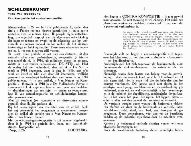 | Keywords: Stijl vol 07 nr 73-74 p 017-018.jpg en Schilderkunst Van Kompositie tot contra-kompositie Painting From composition to counter-composition nl Schilderkunst Van Kompositie tot contra-kompositie Ad Petersen ed ; 1968 De Stijl vol 2 1921_1932 Complete Reprint 1968 Amsterdam Athenaeum Den Haag Bert Bakker Amsterdam Polak Van Gennep p 473 creator Theo van Doesburg 1926 publication PD-old De Stijl magazine Publications by Theo van Doesburg | ||||