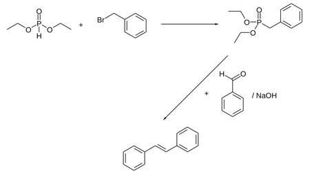 Keywords: Stilbene synthesis01.svg en Synthesis of E -stilbene de Synthese von trans-Stilben own Steffen 962 2011-01-24 PD-chem Cc-zero Stilbene Horner “Wadsworth “Emmons reaction
