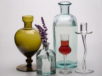 Keywords: still life bottles flowers glass form vase decoration