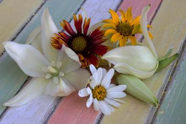 Keywords: still life color paste colors background wood structure flowers yucca sun hat margaret