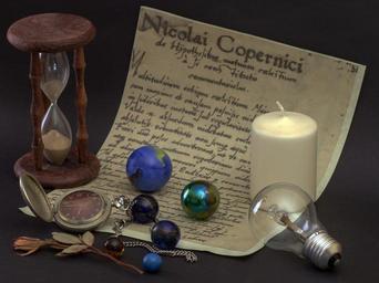 Keywords: still life hourglass glaskugeln candle light bulb mood change