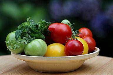 Keywords: still life vegetables tomatoes green yellow red ceramic bowl healthy eat