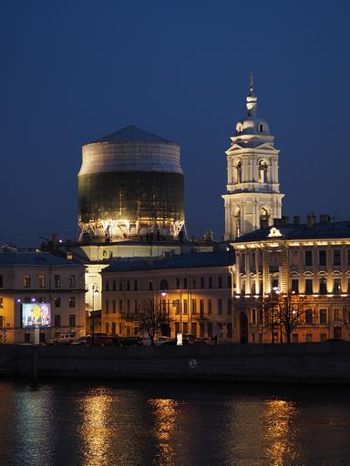 Keywords: night church light water river city buildings outdoor architecture building Екатерининская церковь в лесах Екатерининская церковь в лесах