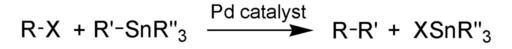 Keywords: Stille reaction scheme.png General scheme of Stille reaction Source Selfmade Date 10 June 2006 Made with ChemDraw 2006-06-10 own assumed Su-no-G