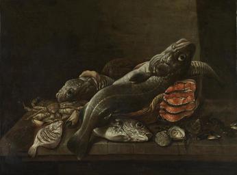 | Keywords: Stilleven met vissen Rijksmuseum SK-A-1466.jpeg accession number SK-A-1466 Creator Isaac van Duynen credit line nl Stilleven met vissen Op een stenen plint liggen deels in een mand kabeljauwen moten zalm oesters en mosselen een krab en een paar platvissen Height cm 96 Width cm 128 exhibition history Institution Rijksmuseum Technique oil canvas object history Acquisition 1888-06-01 object type Potential derivatives exist check http //commons wikimedia org/w/index php search Rijksmuseum+SK-A-1466 this search PD-US PD-old Data and photography rights All data and all images made available through the API are either in the public domain or are subject to a CC0 license https //www rijksmuseum nl/en/api/terms-and-conditions-of-use cc-zero place of creation http //www rijksmuseum nl/collectie/SK-A-1466 Stilleven met vissen Q17324169 Uploaded with GWToolset Stilleven met vissen Rijksmuseum SK-A-1466 http //www rijksmuseum nl/media/assets/SK-A-1466 Images uploaded by Fæ Images from the Rijksmuseum Dutch Golden Age paintings in the Rijksmuseum Amsterdam Isaac van Duynen |