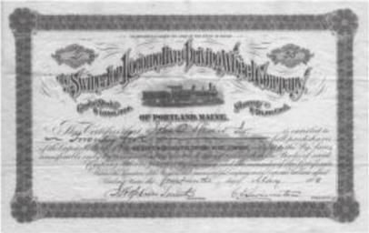 | Keywords: Stock of Swinerton Locomotive Driving Wheel Company (1888).png en Stock of Swinerton Locomotive Driving Wheel Company 1888 Odd capital stock printing date shows 188_ but most likely published in 1888 20 share of 1 000 000 capital A steam lokomotive probably 'Onward' is shown below fancy letters 15 inch wide 2015-06-28 cite book Terry Cox Collectible Stocks and Bonds from North American Railroads Guide with Prices http //books google com/books id mETl1i5rNcEC pg PA490 1 January 2003 Terry Cox 978-0-9746485-0-7 490 Collection of John M Szabol Published by Terry Cox other versions PD-old-70-1923 Uploaded with UploadWizard Swinerton Stock certificates from the United States |