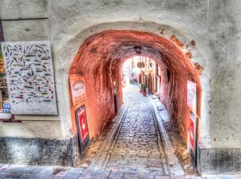 Keywords: stockholm sweden scandinavia europe architecture outdoor urban old town cobblestone tunnel city