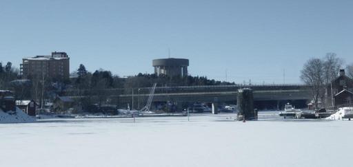Keywords: Stocksundet från Stocksund mars 2010.jpg sv Stocksundet från Stocksund mars 2010 Vy mot Bergshamra Till höger ett fundament till den ursprungliga järnvägsbron own Janders 2010-03-06 Stocksundet Stocksundets broar