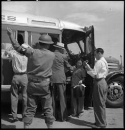 | Keywords: Stockton, California. Evacuees of Japanese ancestry arriving at this Assembly center. Their identi . . . - NARA - 537733.jpg Scope and content The full caption for this photograph reads Stockton California Evacuees of Japanese ancestry arriving at this Assembly center Their identification numbers and family groups are checked by officials as they leave the buses After their baggage has been checked for contraband they will be given a preliminary medical examination and directed to their places in the barracks to await transfer to War Relocation Authority centers for the duration General notes 537733 Local identifier 210-G-C403 Department of the Interior War Relocation Authority 02/16/1944 - 06/30/1946 NARA-Author Lange Dorothea 1895-1965 Photographer 1372774 <br /> Still Picture Records Section Special Media Archives Services Division NWCS-S National Archives at College Park 8601 Adelphi Road College Park MD 20740-6001 1942-05-19 Record group Record Group 210 Records of the War Relocation Authority 1941 - 1989 Record group ARC 537 Central Photographic File of the War Relocation Authority compiled 1942 - 1945 Series ARC 536000 File unit File unit ARC Variant control numbers NAIL Control Number NWDNS-210-G-C403 Other versions <gallery> File Stockton _California _Evacuees_of_Japanese_ancestry_arriving_at_this_Assembly_center _Their_identi_ _ _ _-_NARA_-_537733 tif tif File Stockton _California _Evacuees_of_Japanese_ancestry_arriving_at_this_Assembly_center _Their_identi_ _ _ _-_NARA_-_537733 jpg jpg </gallery> NARA-cooperation PD-USGov Dorothea Lange Stockton Assembly Center |
