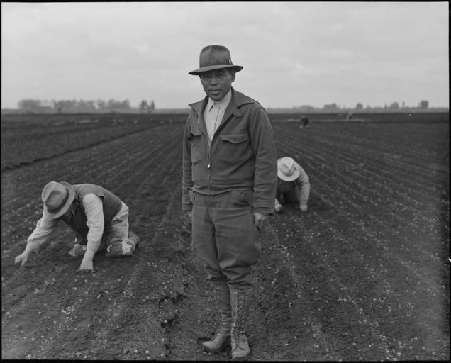 | Keywords: Stockton, California. Weeding celery field in the Delta region, prior to evacuation. Henry Futamach . . . - NARA - 537610.jpg Scope and content The full caption for this photograph reads Stockton California Weeding celery field in the Delta region prior to evacuation Henry Futamachi ranch manager in foreground Farmers and other evacuees of Japanese ancestry will be given opportunities to follow their callings in War Relocation Authority centers where they will spend the duration General notes 537610 Local identifier 210-G-C263 Department of the Interior War Relocation Authority 02/16/1944 - 06/30/1946 NARA-Author Lange Dorothea 1895-1965 Photographer 1372774 <br /> Still Picture Records Section Special Media Archives Services Division NWCS-S National Archives at College Park 8601 Adelphi Road College Park MD 20740-6001 1942-04-10 Record group Record Group 210 Records of the War Relocation Authority 1941 - 1989 Record group ARC 537 Central Photographic File of the War Relocation Authority compiled 1942 - 1945 Series ARC 536000 File unit File unit ARC Variant control numbers NAIL Control Number NWDNS-210-G-C263 Other versions <gallery> File Stockton _California _Weeding_celery_field_in_the_Delta_region _prior_to_evacuation _Henry_Futamach_ _ _ _-_NARA_-_537610 tif tif File Stockton _California _Weeding_celery_field_in_the_Delta_region _prior_to_evacuation _Henry_Futamach_ _ _ _-_NARA_-_537610 jpg jpg </gallery> NARA-cooperation PD-USGov Dorothea Lange Agriculture in Stockton California |