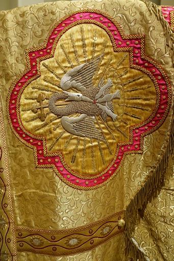 | View Original: | Stole presented to Archbishop Patrick W. Riordan on his silver jubilee, 1908, silk and gold thread, view 2 - Saint Ignatius Church, San Francisco, CA - DSC02624.JPG (3648x5472) | |||