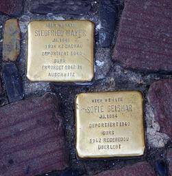 | Keywords: Stolpersteine (Freiburg im Breisgau) 5267.jpg Die Stolpersteine für Siegfried Mayer und Sofie Geismar beim Einhang zur Alten Burse in Freiburg own 2011-03-12 11 21 16 joergens mi User Joergens mi/licence 47 9957275800 7 84982532004 PD-old Jömi 201103 Stolpersteine in Freiburg Bursengang Freiburg |
