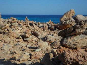 Keywords: stone art cairn stone tower stone turrets stone towers balance mark stacked together migratory character waymarks each other signpost directory hike stone water sea coast rock rocky coast mallorca meditation