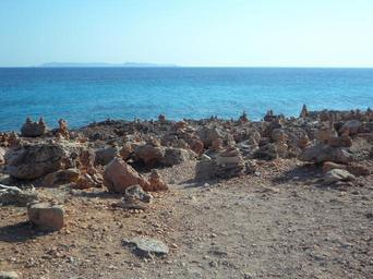 Keywords: stone art cairn stone tower stone turrets stone towers balance mark stacked together migratory character waymarks each other signpost directory hike stone water sea coast rock rocky coast mallorca cap meditation cabrera outlook