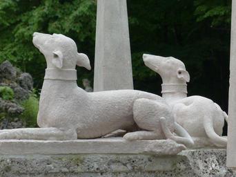 Keywords: stone figure dogs statue garden hellbrunn mannerist garden ornamental garden
