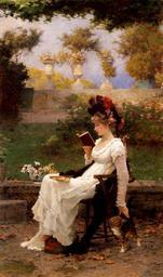 | Keywords: Stone Marcus The End Of The Story.jpg Artwork Creator Marcus C Stone genre painting 1900 painting unknown object history exhibition history credit line signed bottom left MARCUS STONE 1900 accession number http //palgraphicsarea blogspot com/2007/12/art-by-marcus-stone-1840-1921 html PD-old-auto-1923 1921 Marcus Stone People with plants 19th-century paintings location missing 1900 paintings 1900s dresses 19th-century oil paintings of sitting women at full length Paintings of people in nature 19th-century paintings of dogs Empire silhouette Females reading in art Paintings of women with cats Females with white dresses in art Paintings of women reading in chairs outdoors Paintings of women wearing hats Pets in art Regency revival genre paintings Women facing left and looking left Women facing left in art |