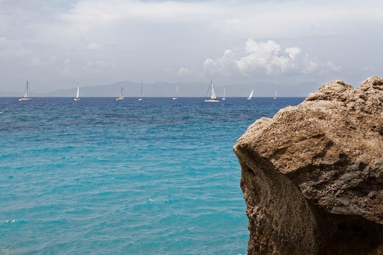 Keywords: stone rock greece rhodes sea water wave sailing boat boot sky