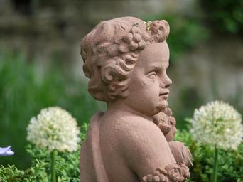 Keywords: stone sculpture cherub öhringer castle castle park angel statue fig side page boy ornament garden park historically face child putto flowers aside decorative bangle