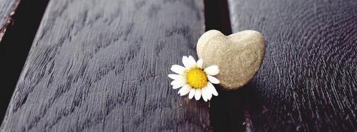 Keywords: stone stone heart heart love romantic nature romance heart of stone luck decoration emotion feelings symbol connectedness relationship connected affection wedding together heart shaped connection heart shape daisy bloom close flora blossom bloom bank wood wooden bench
