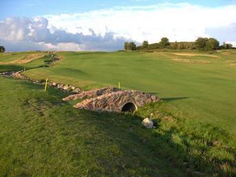 Keywords: stone wall forest golf course grass turf hole nature outside outdoors sports competition summer spring green landscape beautiful sky clouds duffer sport trees