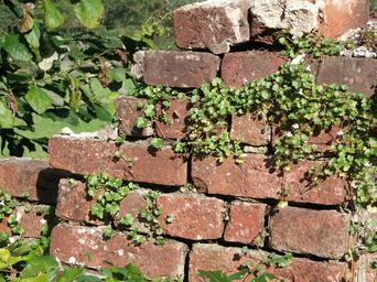 Keywords: stone wall weathered bricks cracks red brown old
