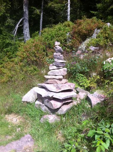 Keywords: stones stone tower stacked balance layered grey discs stack cairn hike turret tower stability