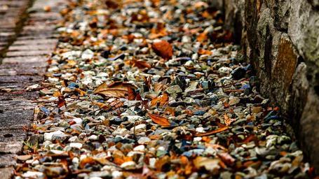 Keywords: stones wall leaves structure nature stone wall autumn mixed away grey rock mystical kassel close rocky