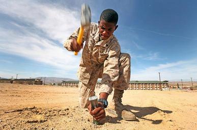 | Keywords: STOP! … Hammer Time (7555911912).jpg Cpl James Morrow a radio operator with 9th Communication Battalion pounds a stake in the ground for an antenna set-up during Large Scale Exercise-1 Javelin Thrust 2012 July 10 Javelin Thrust is an annual exercise with 1st Marine Expeditionary Brigade at Marine Corps Air Ground Combat Center Twentynine Palms Calif which allows active and reserve Marines and sailors from 38 states to train together as a seamless Marine air-ground task force U S Marine Corps photo by Cpl Joshua Young https //www flickr com/photos/marine_corps/7555911912/ STOP ¦ Hammer Time 2012-07-10 09 19 https //www flickr com/people/40927340 N03 Marines from Arlington VA United States PD-USGov United States Marine Corps Official Page https //flickr com/photos/40927340 N03/7555911912 2016-09-03 23 12 17 United States Government Work Blue Javelin Thrust Marine Corps Air Ground Combat Center Twentynine Palms Work Amphibious forces |