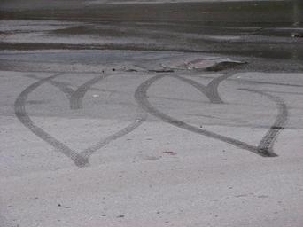 Keywords: Stopy pneumatik.JPG en Car traces on the pavement by Brněnská přehrada own own photo HTO 2009-06-10 Gray on gray photos Tires Heart shapes