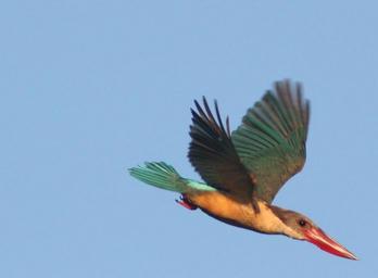 Keywords: Stork-billed Kingfisher.jpg Stork-billed Kingfisher from Kumarakom in Kerala India Photography of Devu Satish 2008-10 Devu Satish Own work cc-zero Pelargopsis capensis Birds in the Kumarakom Bird Sanctuary Halcyoninae in flight